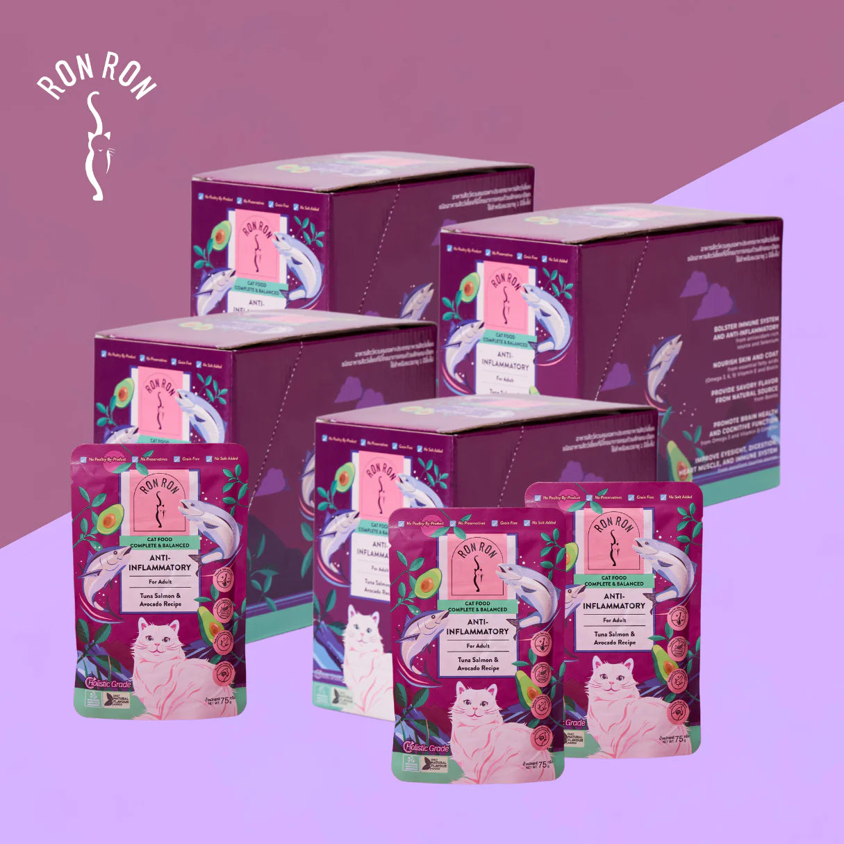 Ronron's 每道食譜中使用的鮪魚肉均來自海豚安全鮪魚供應商,品質優良。所有食譜均採用 100% 新鮮真肉。我們確保食譜不含穀物,不添加任何人工防腐劑。