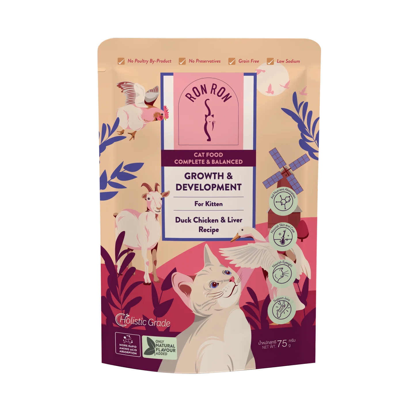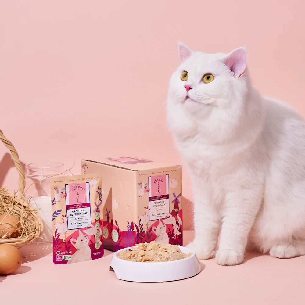 隆重介紹RonRon的鴨肉和雞肉,以綿密的羊奶、雞肝和鴨胗醬慢燉而成,帶出濃鬱的奶油和鹹香。它以慕斯的形式呈現,方便小貓咪從碗裡取出咀嚼。